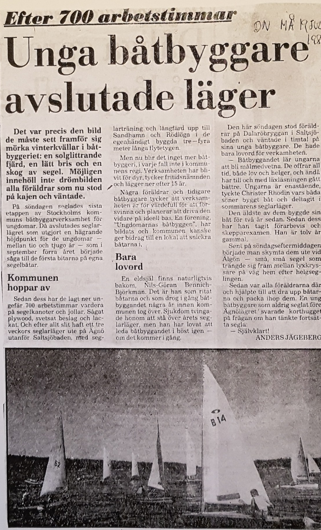 Som 12-åring började jag på en ungdomsverksamhet som hette ungdomarnas båtbygge. Verksamheten grundades och leddes av en fantastisk människa och levnadskonstnär vid namn Nils-Göran Bennich-Björkman.